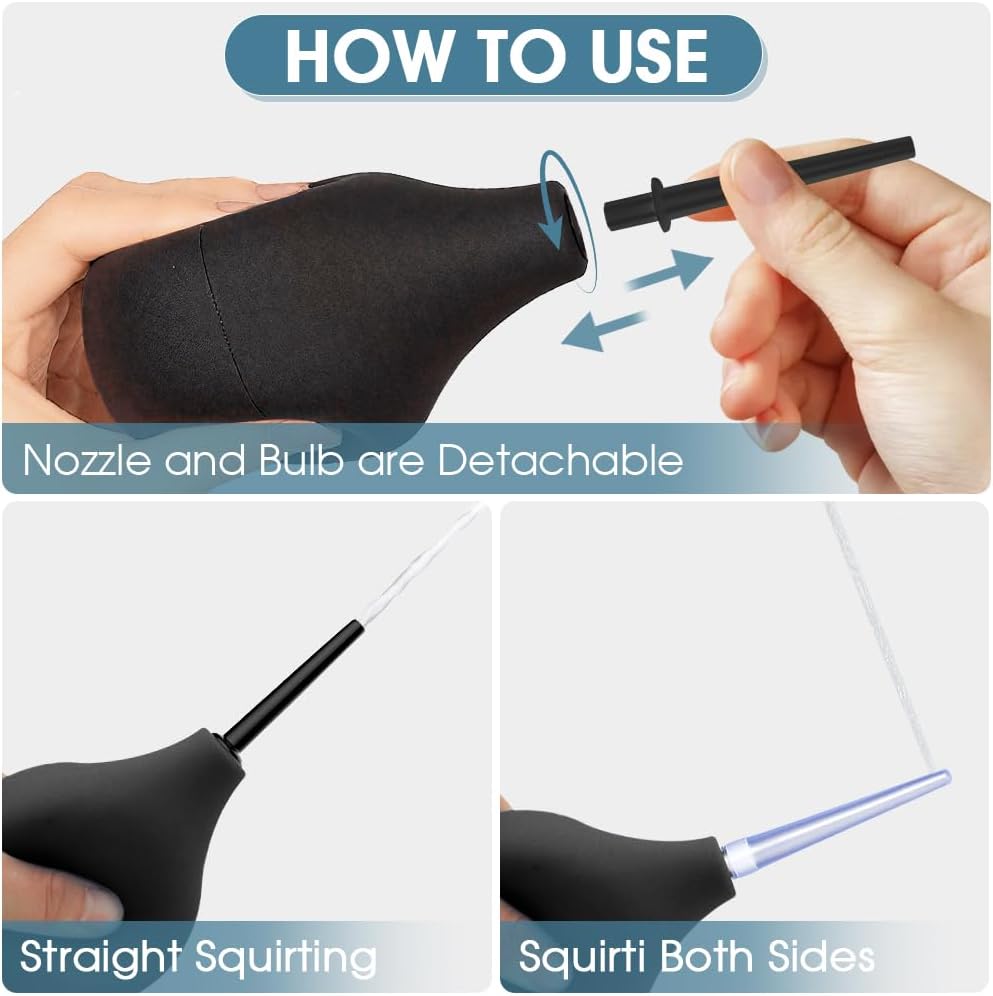 - Funcionamiento simple y fácil de usar: cuenta con un diseño de bombilla fácil de apretar para un uso sencillo. Simplemente llena con líquido, conecta la boquilla preferida de forma segura y aplica suavemente para una experiencia sin complicaciones.